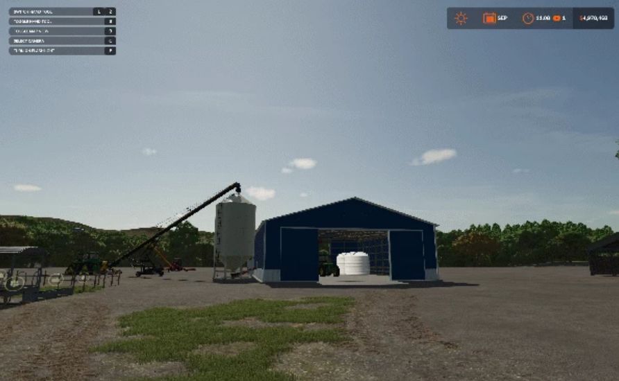 Shed has an auger to load seed into tender/planter. Also has liquid tanks to store liquid fertilizer or herbicide in. Outside of the shed has a Meridian 1620 Hopper Bin to store seed. You will need an auger to fill the hopper bin. Shed is color changeable using Design Kit by ThunRFS.