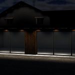 Garage for cars. Lightning outside is automatic and manual inside.