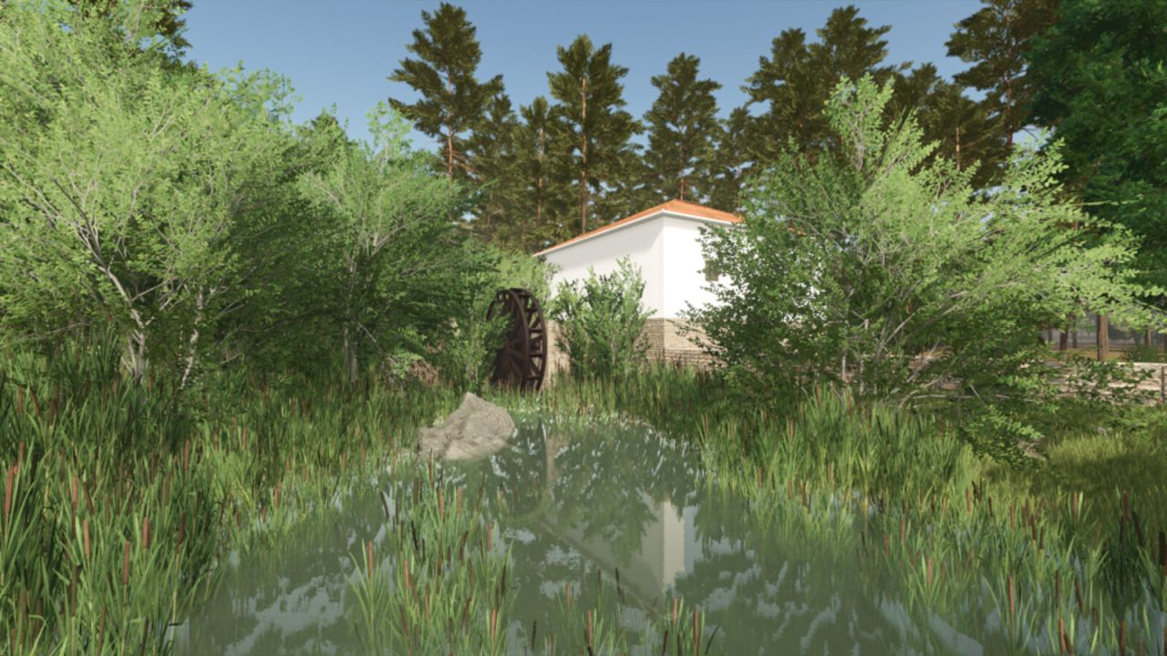 The third modern industrial park is located northeast of the town. It houses a sawmill, a cardboard factory, a distillery, and a clothing factory. Noteworthy in this new version for FS25 are the new productions of peppermint oil, lavender oil, ethanol, and others.