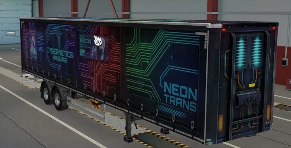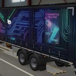 The custom Cyburk trailer design created for Euro Truck Simulator 2 combines a modern and aggressive style. Used sharp lines, strong color contrasts, and eye catching graphic details to make the trailer stand out on the road. The goal was to create a design with character something clean yet powerful. Whether in multiplayer convoys or solo drives, this trailer skin delivers a bold and unique visual presence.