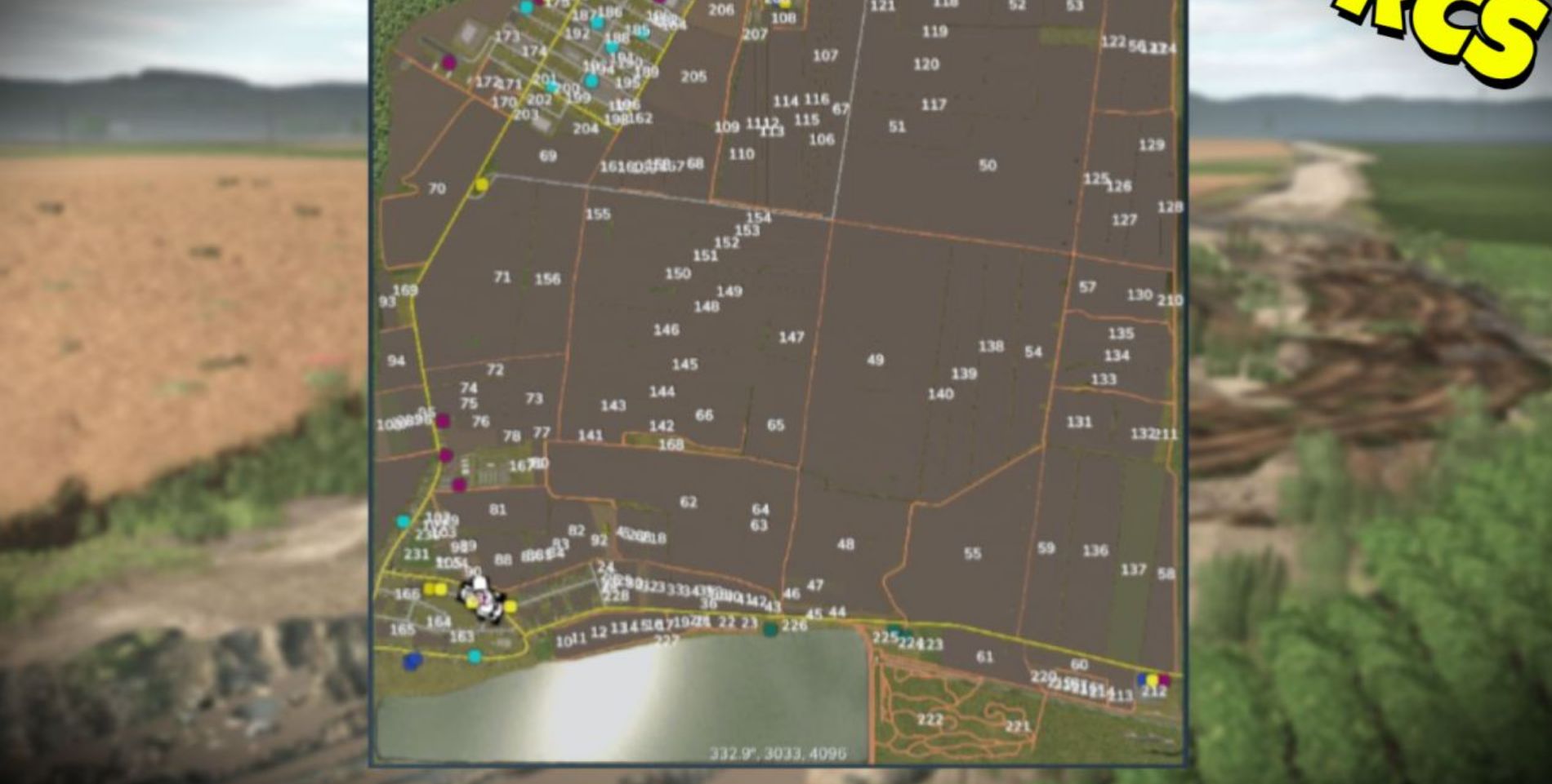 – 232 fields / farmlands