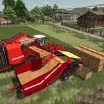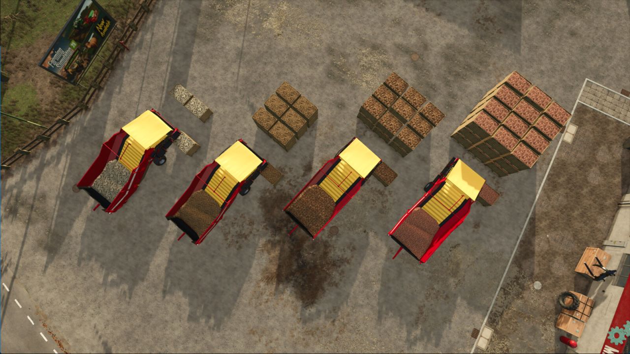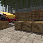 Each box is based on the base-game Dewulf vegetable pallet and holds up to 2,000 liters. The box also has a fillTrigger so can be used to fill implements. The palletizer is fully compatible with shed storage triggers and checks per-slot occupancy before placing a new box. This allows continuous operation together with mods such as Universal Autoload, which can empty the pallet grid dynamically.