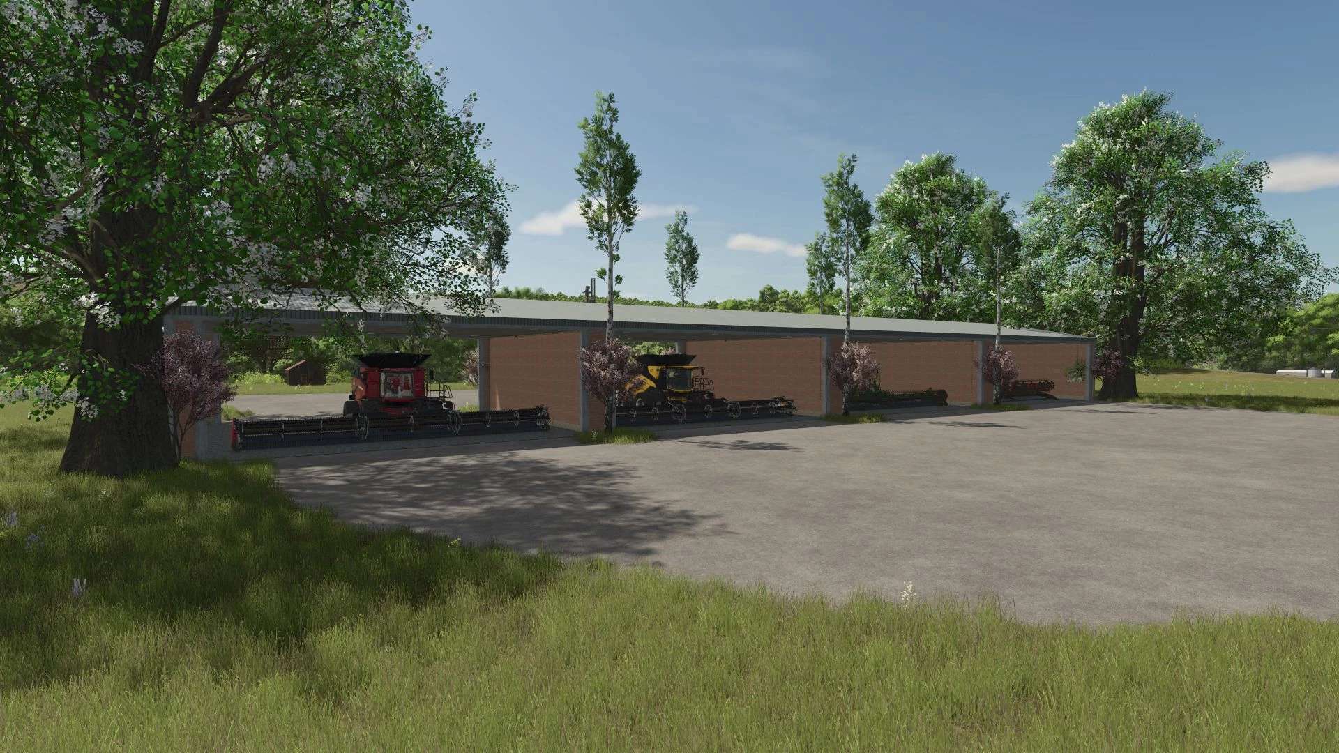 – The garage consists of four sections for four combines.
