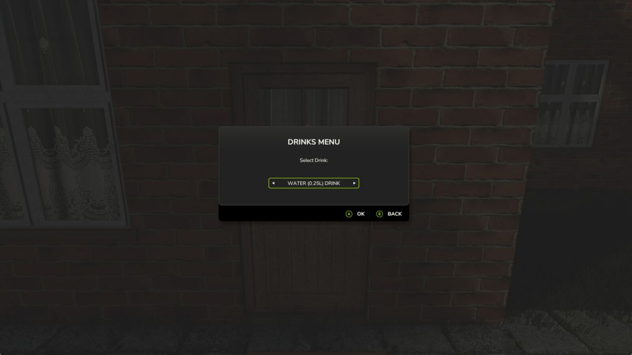 – Eat menu (Full meal / Small meal / Light snack) with difficulty-based cooldowns