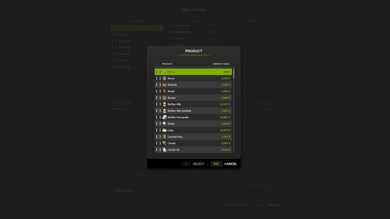 Ideal for agricultural contractor gameplay, this mod lets you bill other farms for your services (plowing, harvesting, transport, animal care, etc.), as well as sell vehicles and consumables directly via invoice.