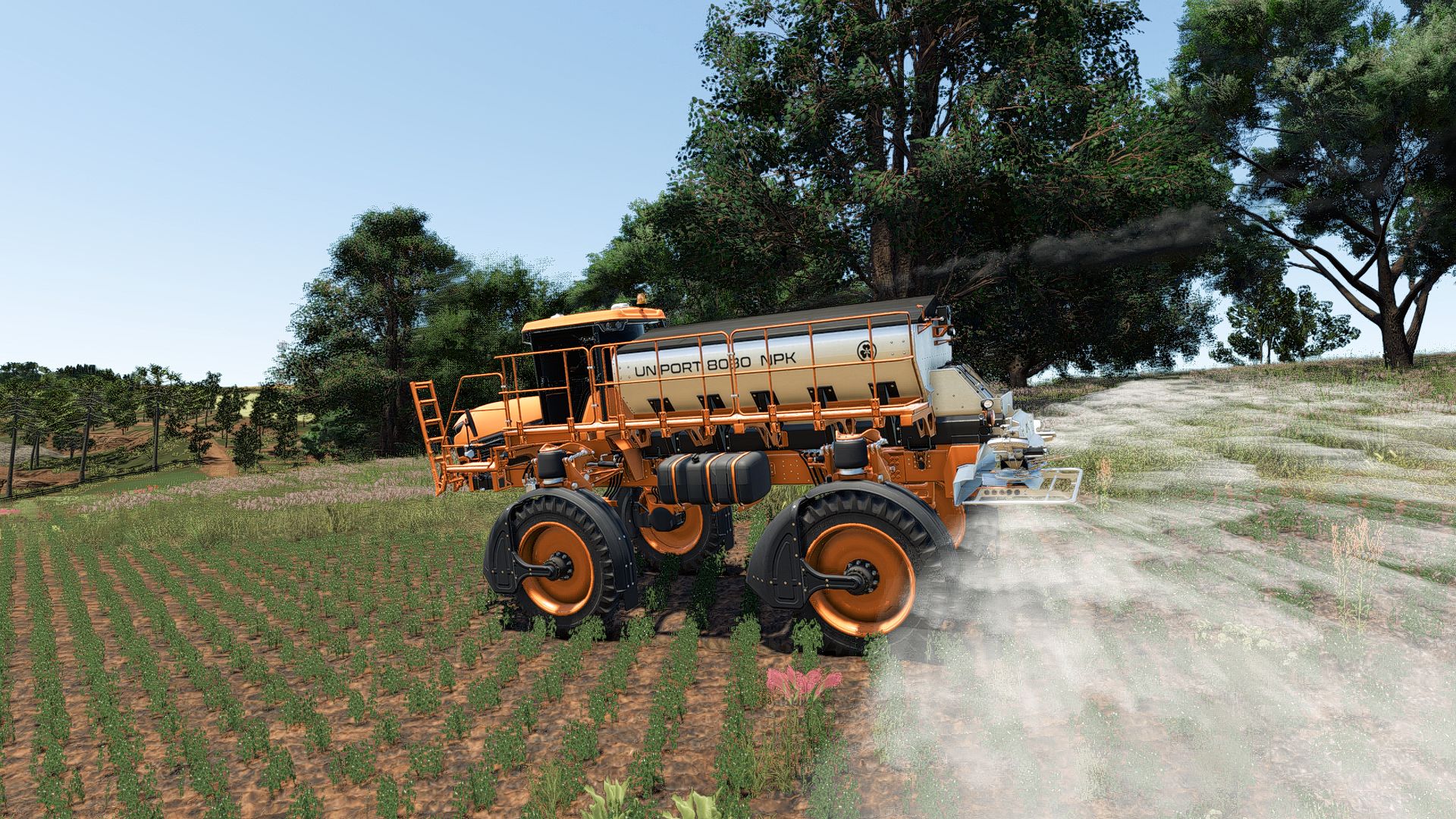 Uniport 8030 NPK has a 8,000 kg capacity reservoir and an application range of up to 50 m for fertilizers, besides also allowing corrective applications. It allows faster maneuvers with a 35% smaller turning radius, providing greater operational yield and reducing the crushing during maneuvers by up to 40%. With opening and closing of the axles, besides the care to preserve the granulometry of the fertilizers.