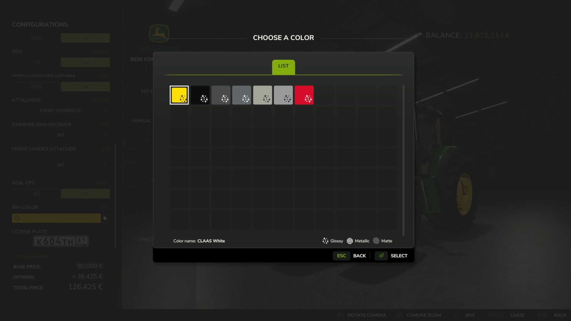 – Rim color selection