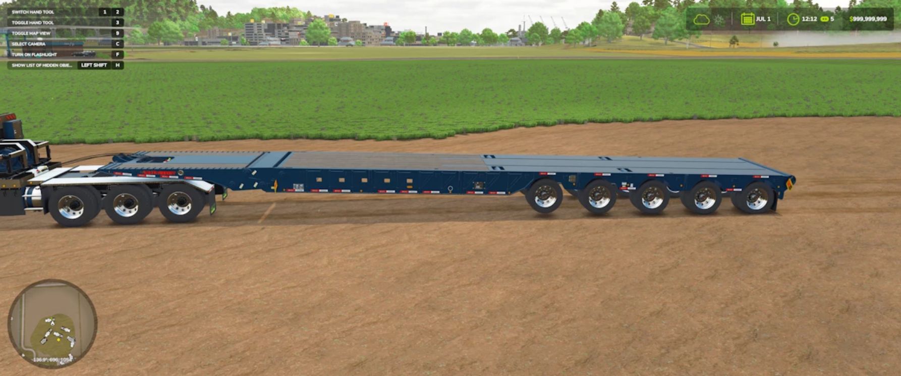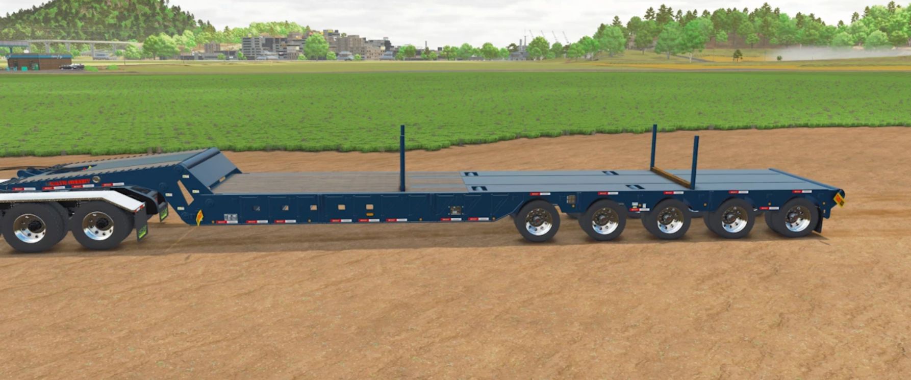 – Has pipe bunks, axle controls, flags and other options.