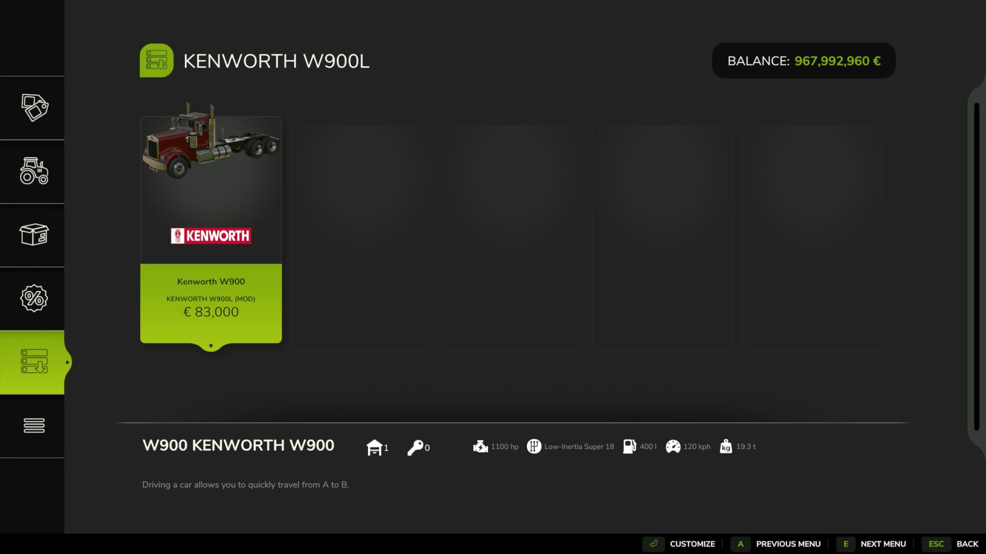 The ATC Kenworth W900 is a highly detailed, American-style truck mod for Farming Simulator 25.