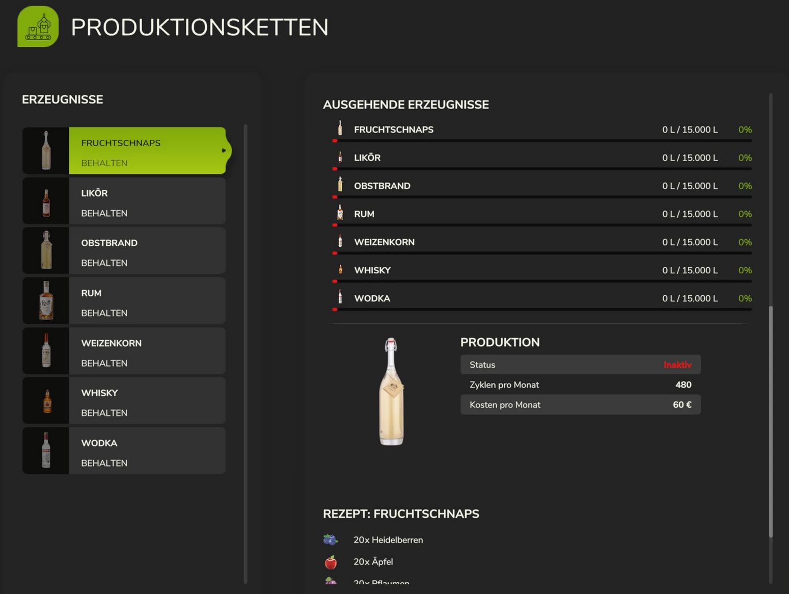 – A distillery for producing fruit brandy, fruit schnapps, liqueur, rum, wheat spirit, whiskey, and vodka.
