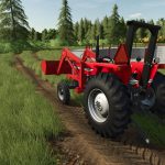 This is meant to resemble how these tractors looked in the USA and Canada, such as Goodyear Dynatorque II tires being standard from the factory, and more compact/beefy front loaders. The front loaders included are reworked Case IH Mount-O-Matic loaders to fit the 360-393 models. They are very similar in design to the Massey Ferguson 232 and 838 loaders offered at the time so it looks pretty good. The 396 and 399 are fitted for the Great Bend 760 loader. Also included are 2 red buckets for the 838 and 232 loaders (from MP Shovels Pack, credit to HJ modding).