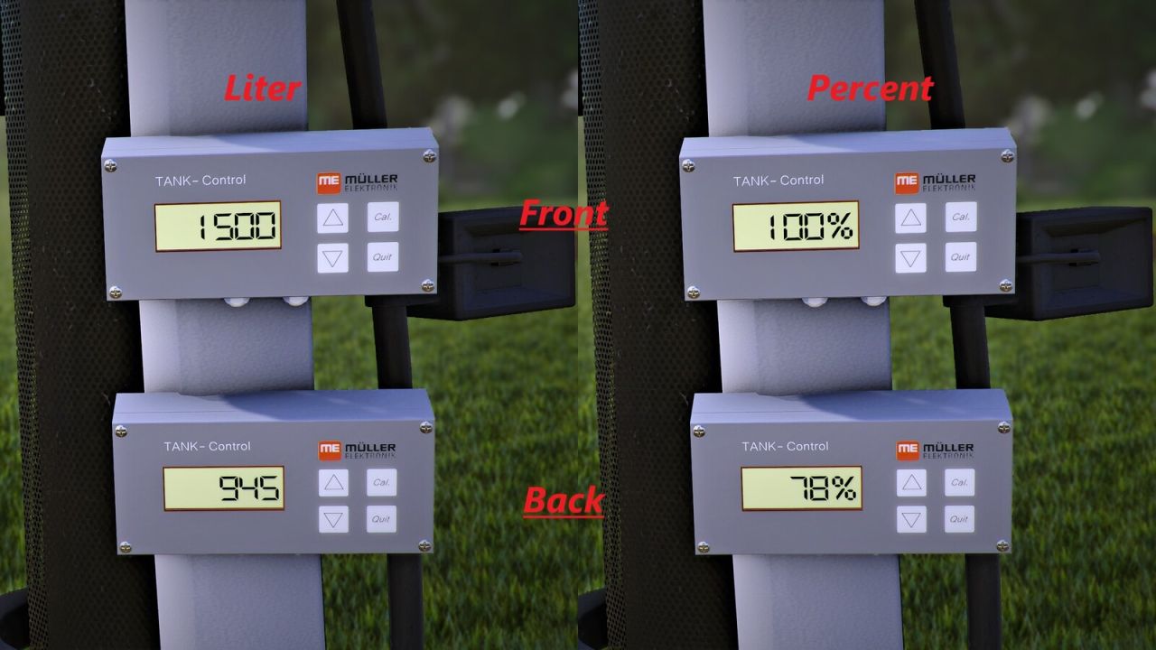 The ME Mueller Elektronik Display Prefab displays the fill level of attached implements or trailers on the vehicle. An installation guide can be found in this file (prefabDesc.xml)