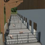 The barn is characterized by its two-part boxes. In the air-conditioned indoor area, the animals find an environment that is easy on their joints thanks to the straw, while also providing them with something to do. The outdoor area with slatted flooring serves as a separate manure area.
