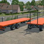 Set of flatbeds from the Spanish brand RINOAGRO, a specialist in the online sale of its machines. This set consists of two flatbeds, two and three axles, with removable front grilles, designed for transporting straw and palletized loads.
