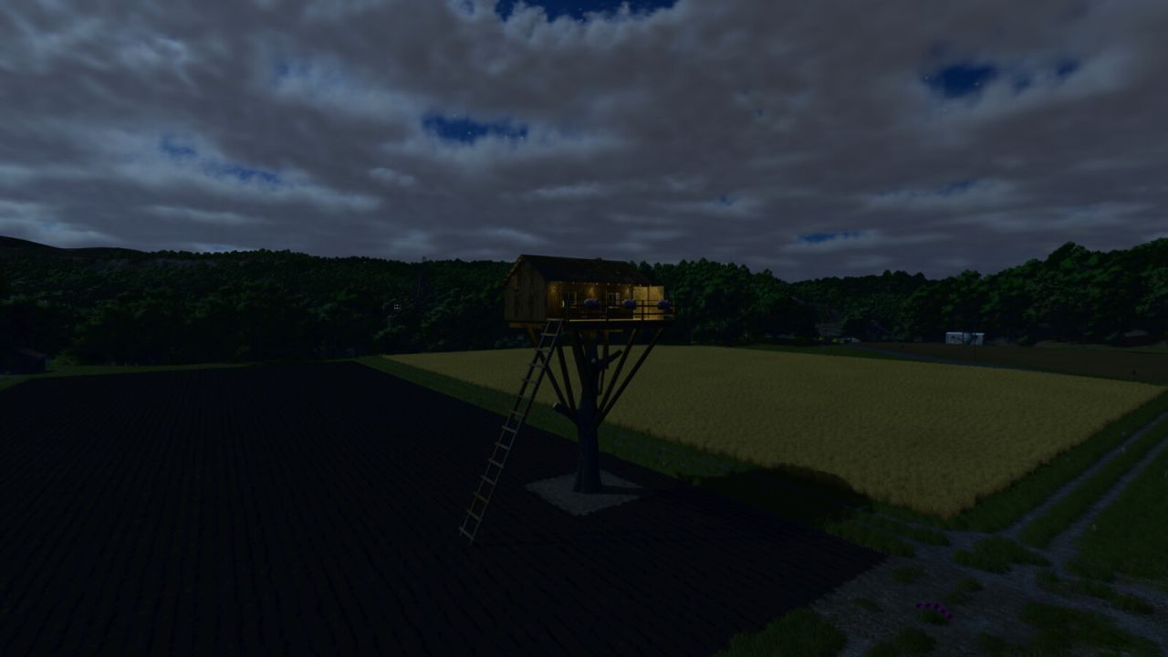 The wooden construction, terrace with railings, and ladder leading to the top make the treehouse a perfect fit for forest areas, survival maps, and creative RP scenarios. Because who said a farmer can’t manage their farm from above?