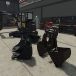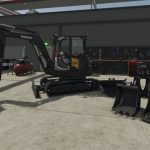 Volvo ECR58F excavator pack reworked for FS25, with corrected controls, improved hitch compatibility and TerraFarm integration.